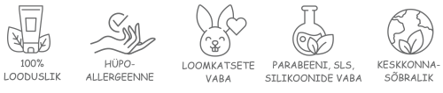 - parabeeni, SLS, silikoonide ja mineraalõli vabad
