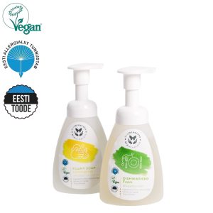 Ühest pudelist jätkub kuni 225-ks pesukorraks. Kui vahuseep otsa saab, ei pea muretsema uut 250ml pudelit, kuna selleks on 1L täitepudel ja 3L täitekanister – nii on kasulikum rahakotile kui ka loodusele.