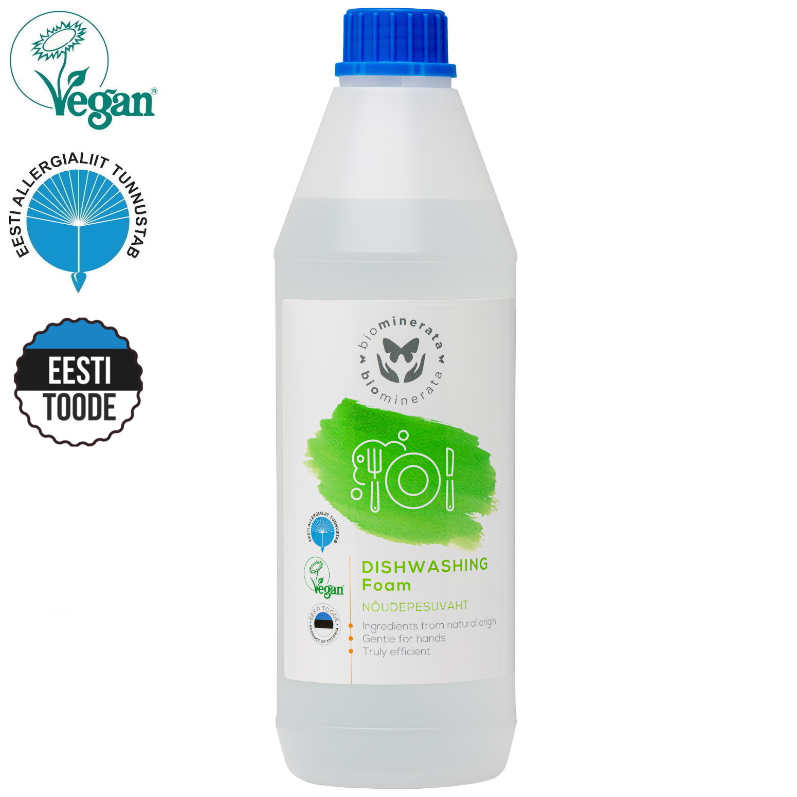 Kasutamine: Täida BioMinerata 250ml nõudepesuvahu pumppudel vedelikuga maksimaalselt 3/4 ulatuses. Vaba ruum on vajalik vahu tekkimiseks.. Ühest liitrist vedelikust jätkub 4 taastäitmiskorraks.